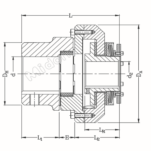 | 型號 TYPE | 力矩 N.M | 最高轉速 r/min | 外徑 DA | 轂徑 DH | 聯軸器孔 d1 | 限制器孔 d2 | 總長 L | L1 | L2 | L3 | 鑼絲 screw |