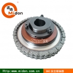 BKC邁動(扭力保護鏈條)聯軸器是主要結構為雙排滾子鏈聯接的聯軸器加摩擦傳動裝置,是有彈性元件撓性安全聯軸器的一種型式,工作時鏈輪與摩擦片之間可產生相對滑動,起安全保護作用,轉矩根據碟形彈簧的壓縮量而確定。BKC聯軸器可在同軸系中傳動使用,也可以用單排鏈條在平行軸系中使用,性能相同。