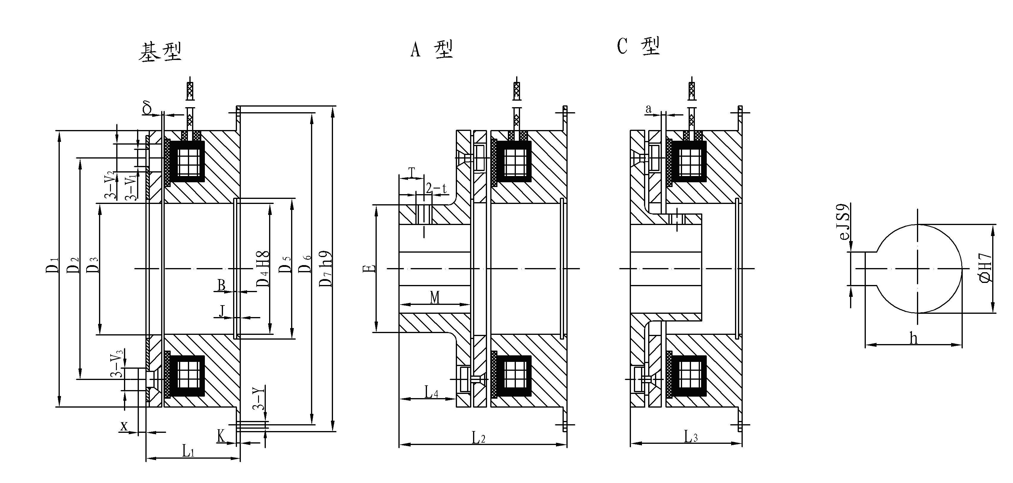 規(guī)格 | B | V1 | V2 | V3 | Y | X | K | E | T | t | φ | h | e | δ |
