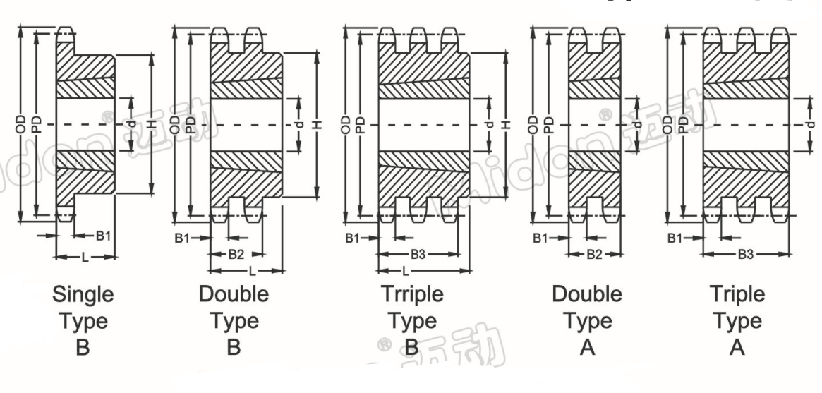 | 齒數(shù) Teeth | 外徑O.D | 節(jié)徑P.D | 型號/齒數(shù)-排數(shù) | 錐套bush | 最大孔 Max | B型凸臺Hub | 重量 W.t | 齒數(shù) Teeth | 外徑O.D | 節(jié)徑P.D | 型號/齒數(shù)-排數(shù) | 錐套bush | 最大孔 Max | B型凸臺Hub | 重量 W.t | |||