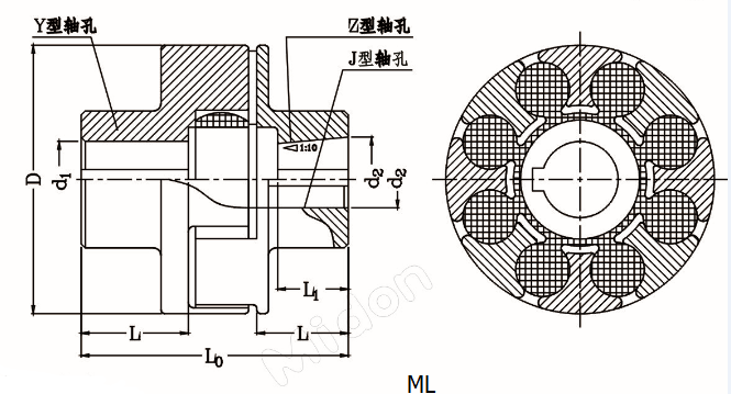 邁動(dòng)ML系列梅花形彈性聯(lián)軸器主要由兩個(gè)帶凸齒密切嚙合并承受徑向擠壓以傳遞扭矩,當(dāng)兩軸線有相對(duì)偏移時(shí),彈性元件發(fā)生相應(yīng)的彈性變形,起到自動(dòng)補(bǔ)償作用。