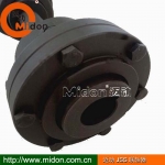 2、罩殼表面有個M6和M8是注油孔,用于檢修注油之用。安裝時應確保鑼絲定位在法蘭溝槽中,才能蓋實整個聯軸器。