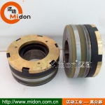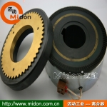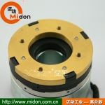 邁動工業牙嵌式離合器--用兩半離合器端面上的牙互相嵌合或脫開以達到主、從動軸的離合、牙有矩形、梯形、三角形、鋸齒形和螺旋形等幾種形式。由于同時參與嵌合的牙數多,故承載較高,適用范圍廣泛.外形尺寸小,傳遞轉矩大,接合后主從動軸無相對滑動,傳動比不變。但接合時有沖擊,適合于靜止接合,或轉速差較小時接合(對矩形牙轉速差≤10r/min,對其余牙形≤300r/min),主要用于低速機械的傳動軸系.